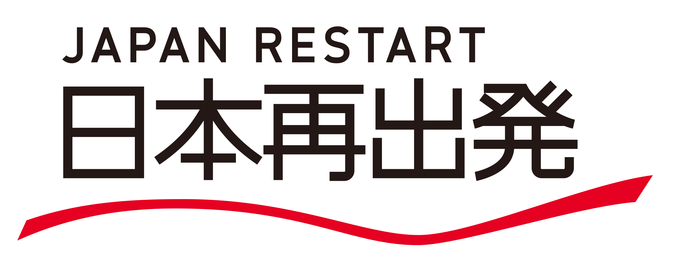 これを受けロゴマークは基本理念をシンボライズしながら、「日本再出発」への船出と右肩上がりの上昇気流をイメージしました。