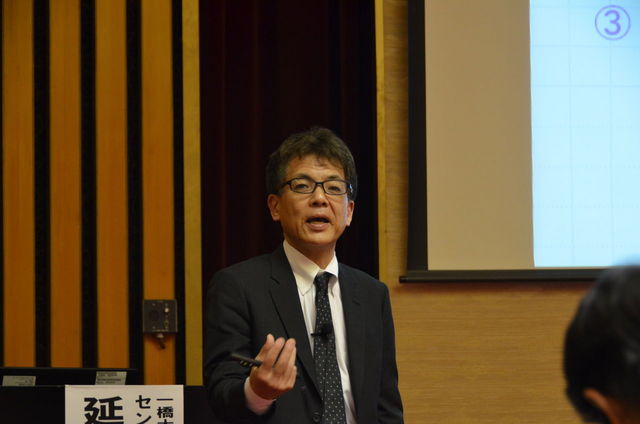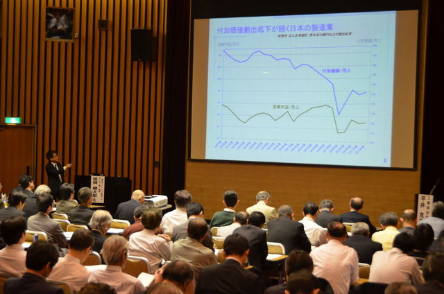 講師の一橋大学イノベーション研究センター長・教授の延岡健太郎氏は、日本の製造業は、付加価値創出の低下が続いている厳しい状態ではあるが、企業にとっては「価値づくり」こそが社会貢献であるとし、横並びからの脱却、真の顧客価値の創造を目指すべきと指摘しました。価値づくりには、他社に真似をされない強みを持つこと、商品ではなく、組織能力(コアコンピタンス)での差別化が必要だとし、「設計・開発能力や問題解決能力など熟練された技術者による“積み重ね技術”を組織内で戦略的にマネジメントすることが大切だ」と強調しました。また、顧客価値を創出するためには、スペックなど客観的な価値が定まっている機能的価値よりも、特定の顧客にとって付加価値の高い“意味的価値”が重要だとし、「顧客企業の利益が増大する商品やサービスを提供し、意味的価値を加えることで、真の価値づくりを実現してほしい」と述べました。