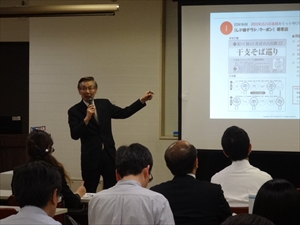 港支部は4月28日、「集客アップ! 売上アップ!効果的な広告の作り方」セミナーを開催しました。アドバリューの平野義典社長が、商品を買いたくなる、お店に行きたくなる、さらに、ライバル企業に差をつける効果的な広告の作り方について説明しました。参加者からは、「事例や比較方式を多用した説明でとてもわかりやすかった」「修正前と修正後の事例がわかりやすく参考になった」などの声が聞かれました。