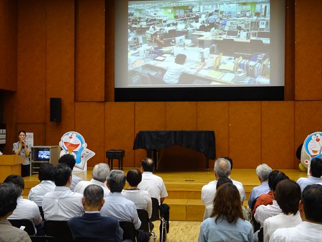 本視察会は2部構成で、まず「築地玉寿司 晴海通り店」にて中央支部副会長で株式会社玉寿司 会長の中野里孝正氏からご講話をいただき、その後、朝日新聞東京本社に移動して報道・編成局、印刷工場、発送装置などを見学しました。