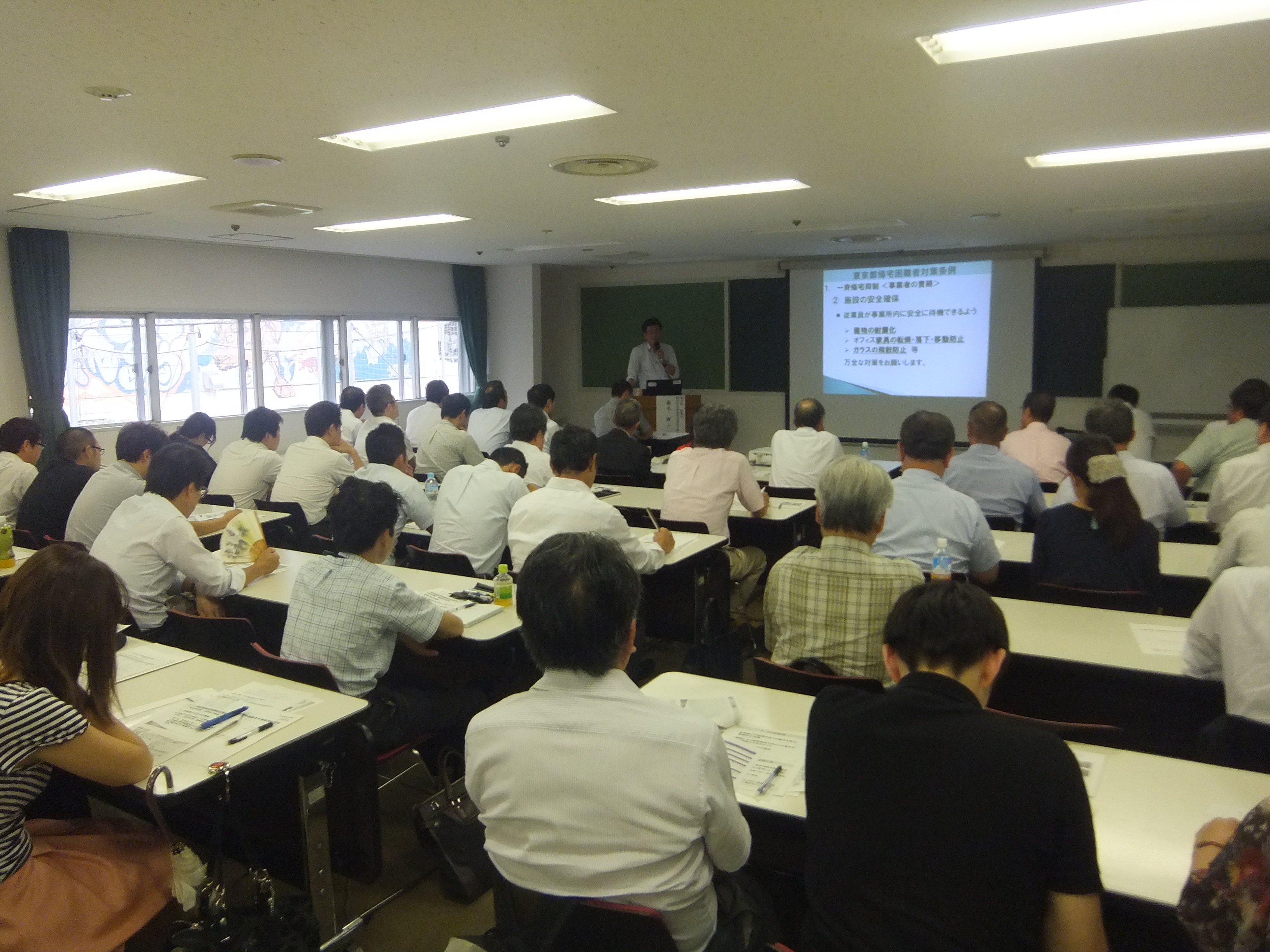 東京商工会議所は8月25日「東京都帰宅困難者対策条例説明会(城東ブロック)」をすみだ産業会館にて開催し、約60名が参加しました。