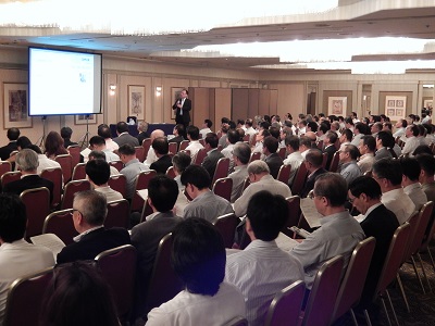 講演では、日経新聞の人気コラム「200年企業」の執筆を担当した安西巧編集委員から、取材した各地の老舗企業のエピソードや、日本に古くから根付く近江商法や伊勢商法といった伝統的な商売の思想について、具体例を交えて詳しい解説がありました。