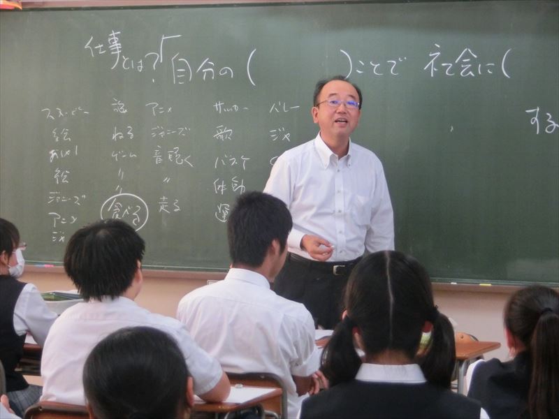 当日は、講師の方々が自身の経験に基づき働くことの意義や、目標を定めて努力することの大切さ等について講話を行い、中学生たちも普段なかなか聞くことのない先生や親以外の「社会人」の話しに真剣に聞き入っていました。