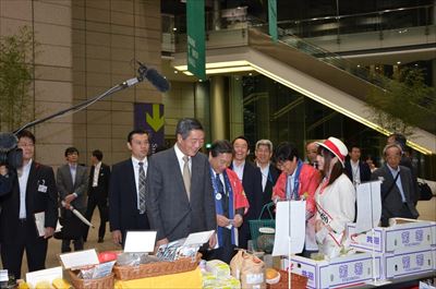 また、15日には竹下復興大臣が来場されました。竹下大臣は「いまだに風評被害はなくなっていないが、全ての農産物は安全性をしっかり確認した上で売られている。風評被害を乗り越えて、一日も早い復興を成し遂げたい。」と述べられました。