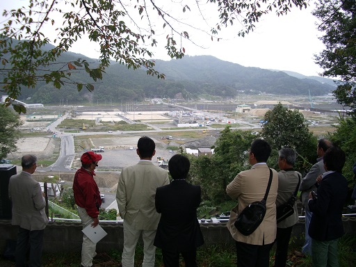 宮古駅から復興のシンボルである三陸鉄道に乗車し田老地区へ。田老地区では語り部ガイドの解説とともに防潮堤や区画整理事業の現場を視察した。漁港の製氷工場の屋根下(約16m)までの高さの津波が襲った。たろう観光ホテルから撮影されたマスコミ非公開の震災当日の映像等を視聴した。