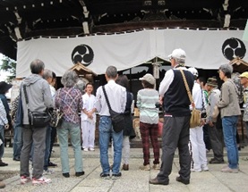 秋らしいお天気で絶好の“まち歩き日和”となりました。連綿と続く「赤煉瓦塀」沿いを歩きながらの出発。普段は見ることのできない石井邸の見学や由緒ある「尾久八幡神社」での宮司さんからの説明。そして温泉・花街・三業地として賑わった尾久の歴史を感じながらのまち歩きを楽しみました。おもてなし店「増田園」では大変香りの良い日本茶を試飲。「やくぜん和楽」で“野沢菜のおやき”を堪能。そして「お好み焼き“てるぼ”」では、食材にこだわったお好み焼き楽しみました。