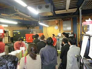 株式会社浜野製作所では、ものづくりの現場を視察させていただいたほか、会社の歴史や、産学連携の取り組みについてご説明いただきました。