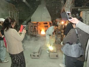東日本金属株式会社では、伝統的な鋳物の作業場をご案内いただき、職人の技がなせる製品の数々を、製品製造の実践を伴いながら、ご紹介いただきました。