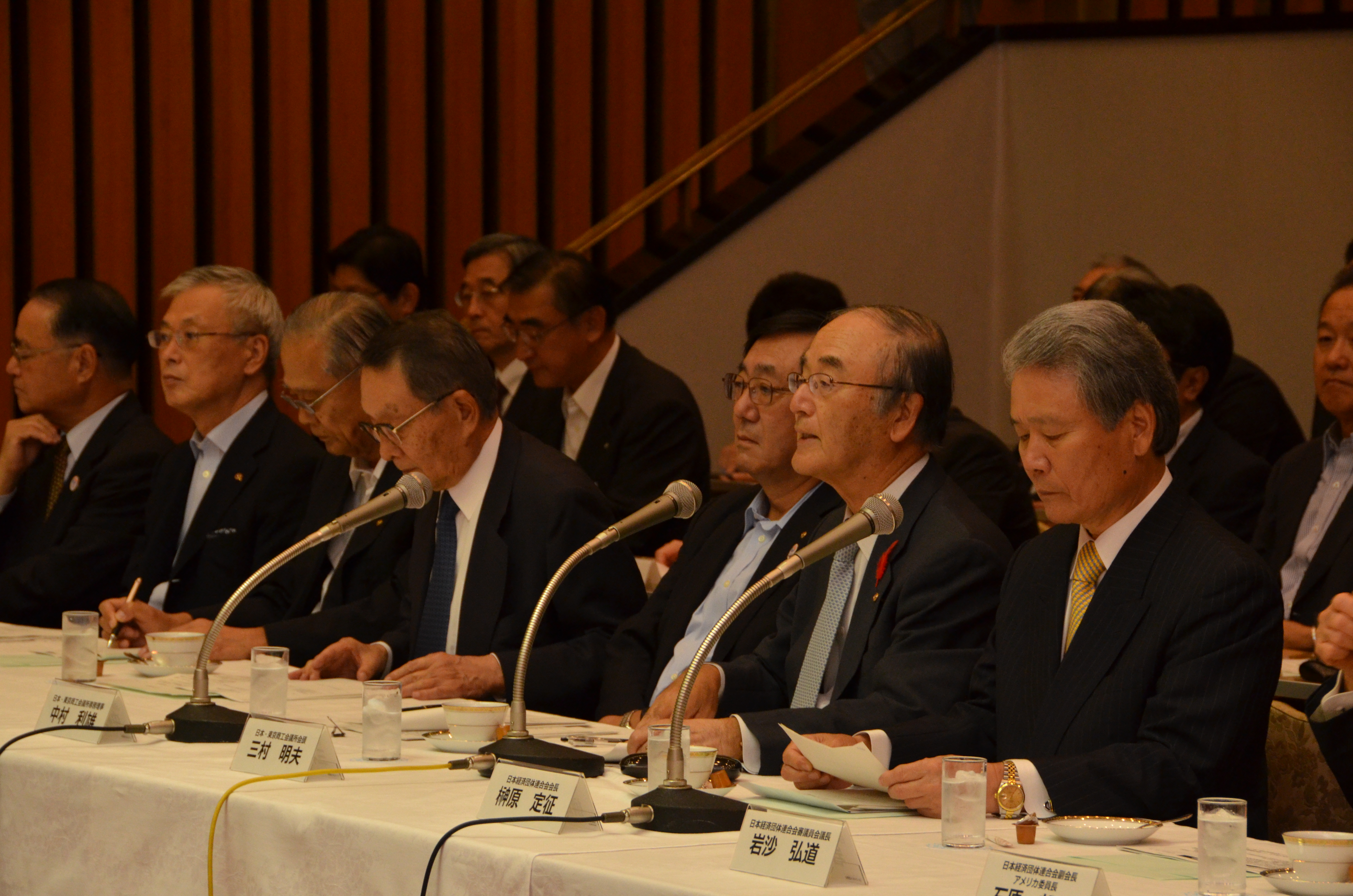 三村会頭は挨拶で、アジア大洋州地域が貿易・投資両面における日本にとって最大のパートナーだとした上で、「わが国の産業の国際競争力を高め持続的な成長軌道に乗せるためにも、アジア大洋州地域が持つ高いポテンシャルと経済成長の活力を取り込むことが必要不可欠」と述べ、特に来年の経済共同体の実現を目指すASEAN地域への企業の関心の高さを強調しました。また、アジア大洋州地域との連携強化に向け、TPP(環太平洋経済連携協定)をはじめ各国・地域との経済連携協定をスピード感をもって推進することが極めて重要であるとの考えを示しました。来年2月に予定されているインドネシアとフィリピンへの経済ミッション派遣にも触れ、「両国政府に日本企業がビジネス展開しやすい投資環境の一層の整備を求めたい」と述べました。