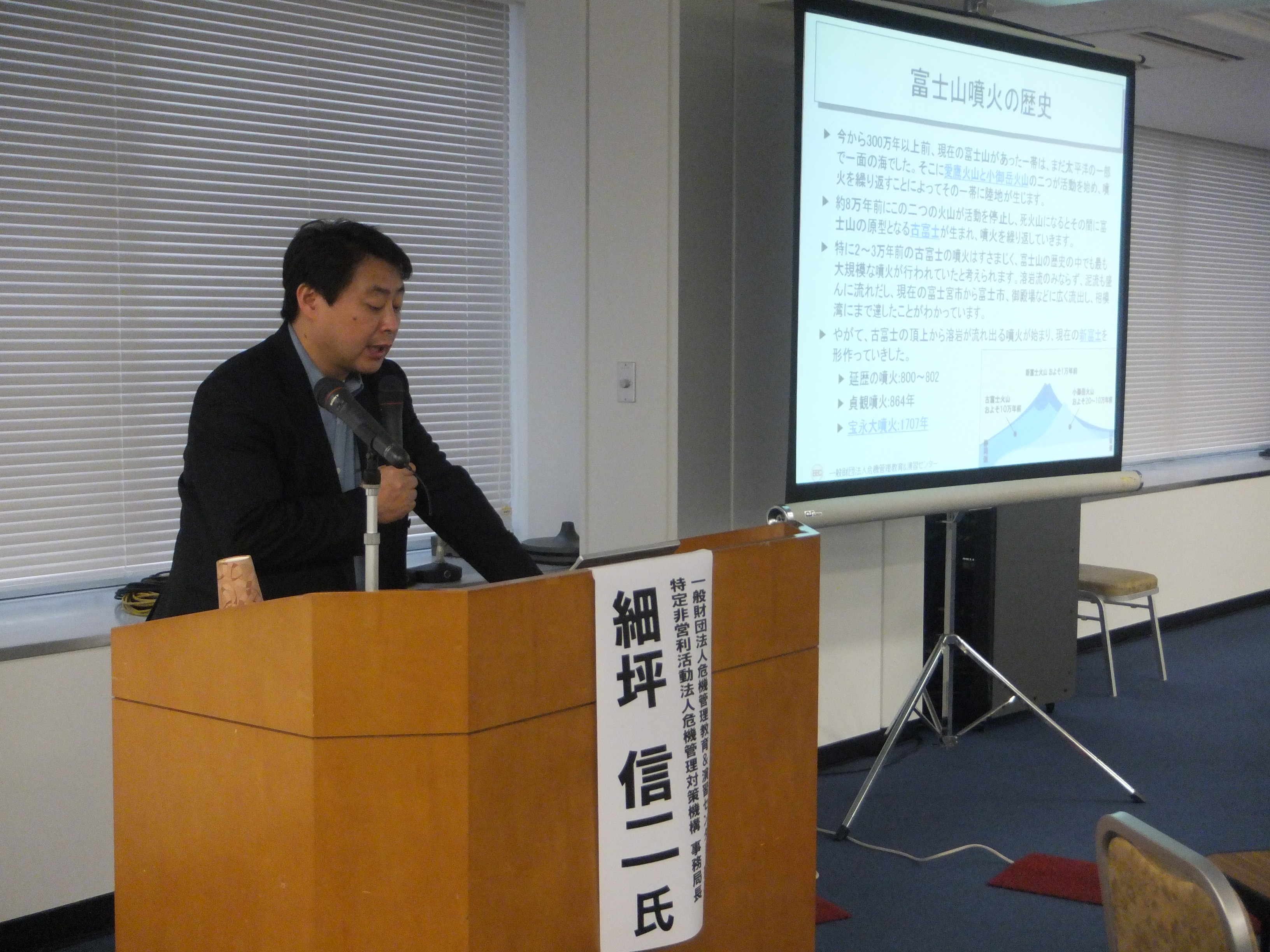 東京商工会議所 震災対策特別委員会では、特定非営利活動法人危機管理対策機構との共催で、BCP推進事業の一環として3月19日(木)に、「D-PACプロジェクト-災害に立ち向かう企業づくり-想定外への挑戦~富士山噴火を考える~」のセミナーを開催し、70名が参加しました。