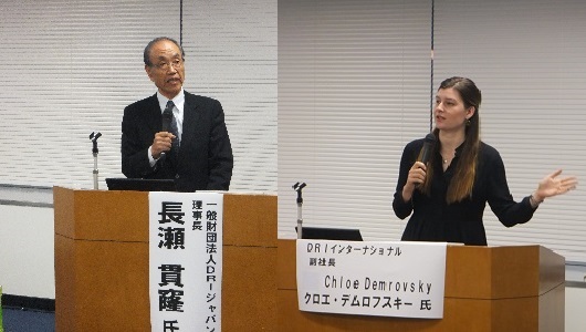 ワークショップ後は、アメリカから来日しているDRIインターナショナル 副社長のChloe Demrovsky(クロエ・デムロフスキー)氏による「米国・世界の事業継続の動向」とDRIジャパン 理事長 長瀬貫窿(かんりゅう)氏による「阪神淡路大震災の経験をベースに、Resiliencyの下での危機管理の在り方」の講演を行いました。
