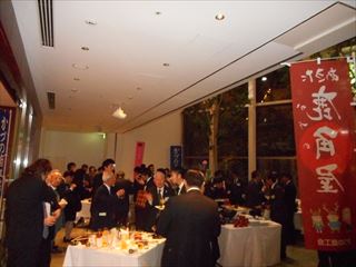 続いて、主催者を代表して、東京商工会議所中野支部 麻沼 雅海会長、中野工業産業協会 溝口 秀二会長および中野区しんきん協議会 半澤 佳宏幹事長の挨拶がありました。来賓紹介ののち会場をパーティー会場へ移し、一般社団法人中野区観光協会 宮島 茂明理事長の乾杯のご発声で懇親パーティーが盛大に執り行われました。約200名が参加し、新年の挨拶と親睦を深める場となりました。