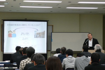 こうした飲食店向けのサポートの一環として、平成27年2月5日に、飲食業の開業を準備中の方、多店舗展開や店舗移転を計画している方を対象に、居抜き物件仲介の専門家である元株式会社ABC店舗の福田美智子氏、飲食店支援の専門家である株式会社STAYDREAM代表、中小企業診断士の原島純一氏を講師に招き、セミナーを開催しました。
