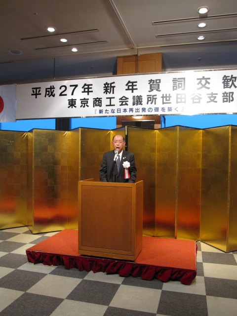 当日は世田谷区の保坂展人区長をはじめ、国会議員、都・区議会議員、関係団体の長など67名の来賓が参加、東京商工会議所本部からも鳥原光憲副会頭が出席し、世田谷支部会員とあわせ230名が新しい年を祝いました。