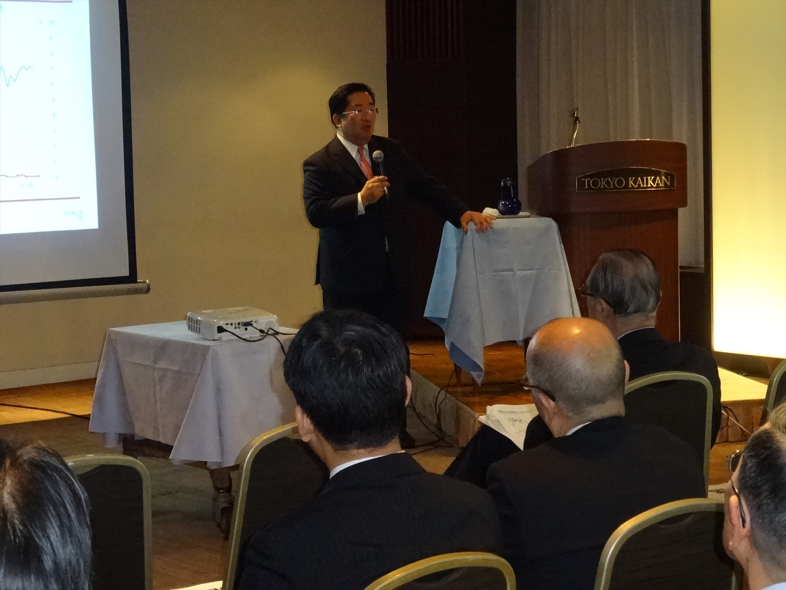 会議に先立って開催された特別講演会では、クレディ・スイス証券のチーフ・マーケット・ストラテジストの市川眞一氏が「世界経済・日本経済の行方」と題して講演し、130人以上が耳を傾けました。また、会議終了後の懇親会では、第12回「勇気ある経営大賞」の特別賞を受賞した評議員である櫻井武志・東京ブラインド工業社長が挨拶をしました。