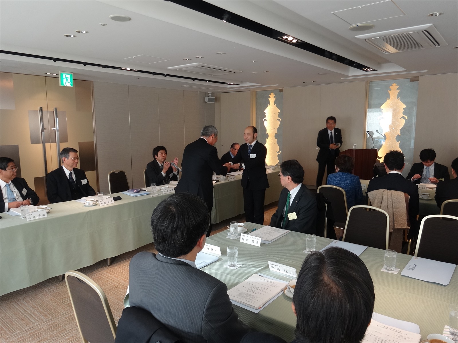 冒頭、池田朝彦会長は、昨年支部創立40周年記念および被災地支援事業として実施した、「講演会・コンサート」、「会員懇親ゴルフ大会 及び 役員・評議員懇親ゴルフ会 」での寄付金48万2000円をあしなが育英会に贈呈しました。