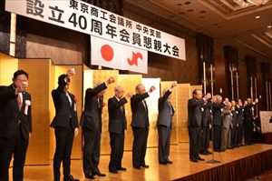 東商中央支部(会長=國分勘兵衛・国分会長兼社長)は3月5日、中央支部設立40周年を記念した「設立40周年会員懇親大会」を開催し、矢田中央区長をはじめとする来賓や会員企業など計502名が参加しました。