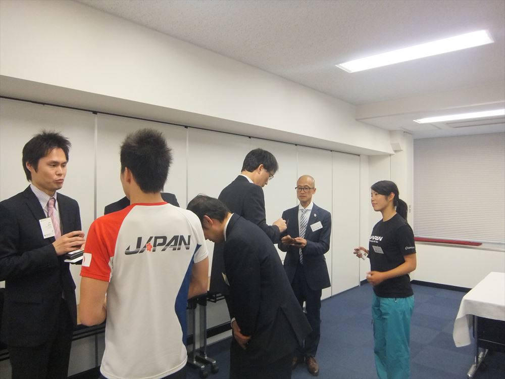 東京商工会議所健康づくり・スポーツ振興委員会の後藤委員長とJOC日本オリンピック委員会の青木副会長は挨拶の中で、「世界を目指すトップアスリートでも雇用環境は、非常に厳しく、企業のサポートが必要です。」と参加の会員企業に協力をお願いしました。