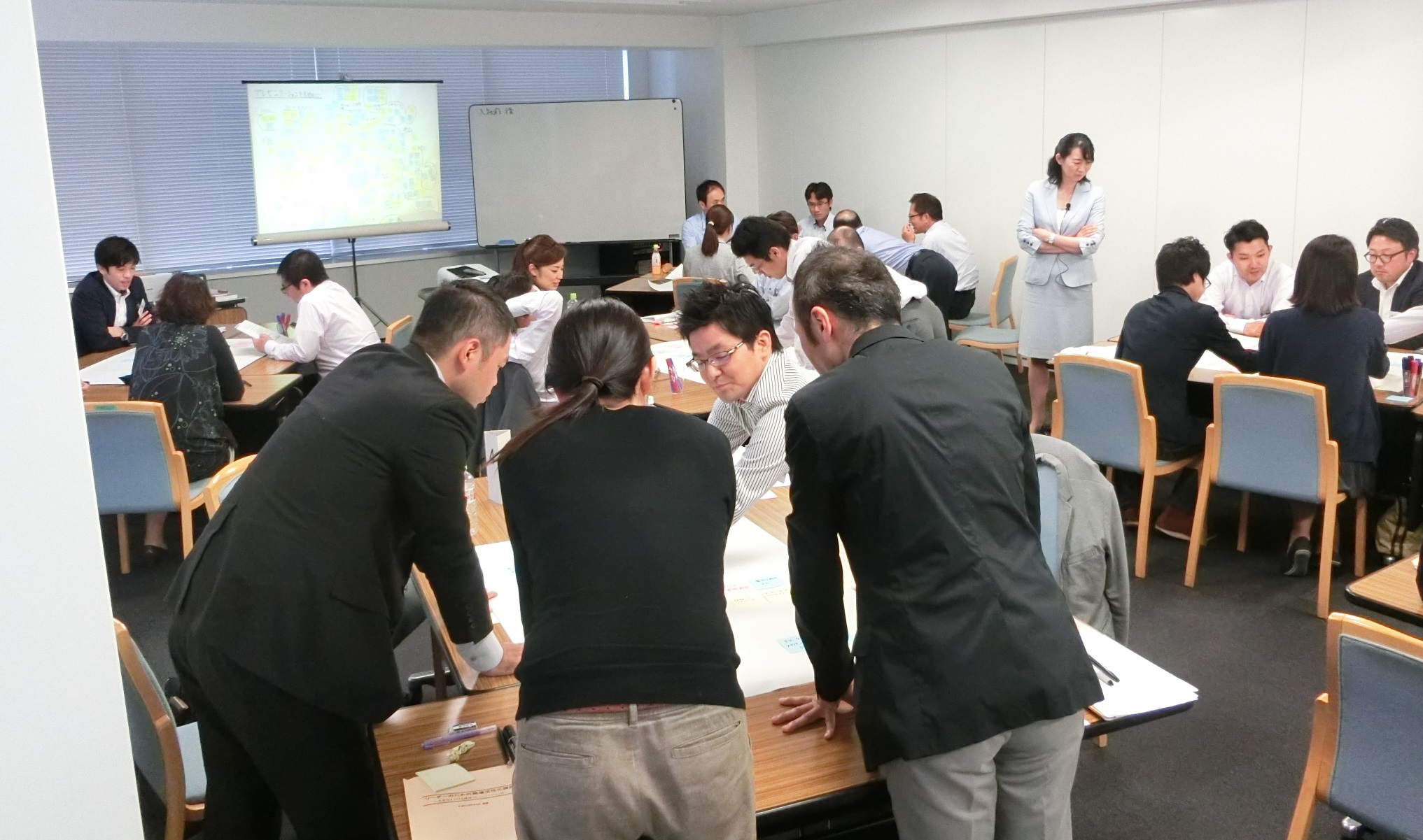 出席された管理職や社内リーダーの方々が、「理想の職場とはどんなものか?」や「現在の職場の課題は何か?」などをグループ内で話し合い、活発な意見交換がされました。その後、原田講師から職場活性化に成功した企業の事例紹介やすぐに取り組める3つの職場活性化策などをご説明され、最後に「15分ワークショップ型ミーティング」をグループで体験し具体的な実践方法や意見の出し方などを体験しました。