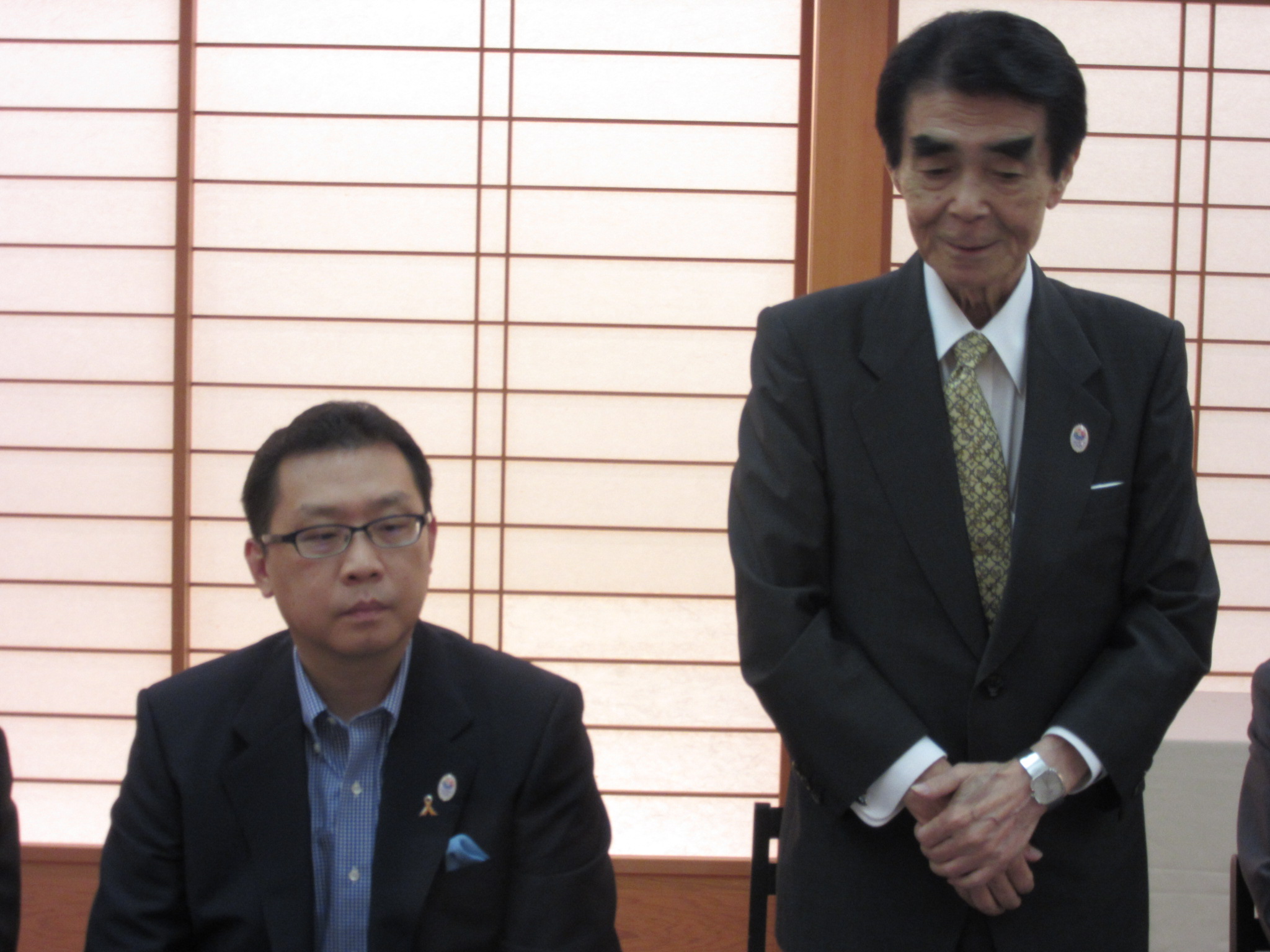 文京支部の金子收会長(共同製本会長)をはじめとする文京支部の役員ら20人は6月25日、成澤廣修・文京区長と懇談しました。