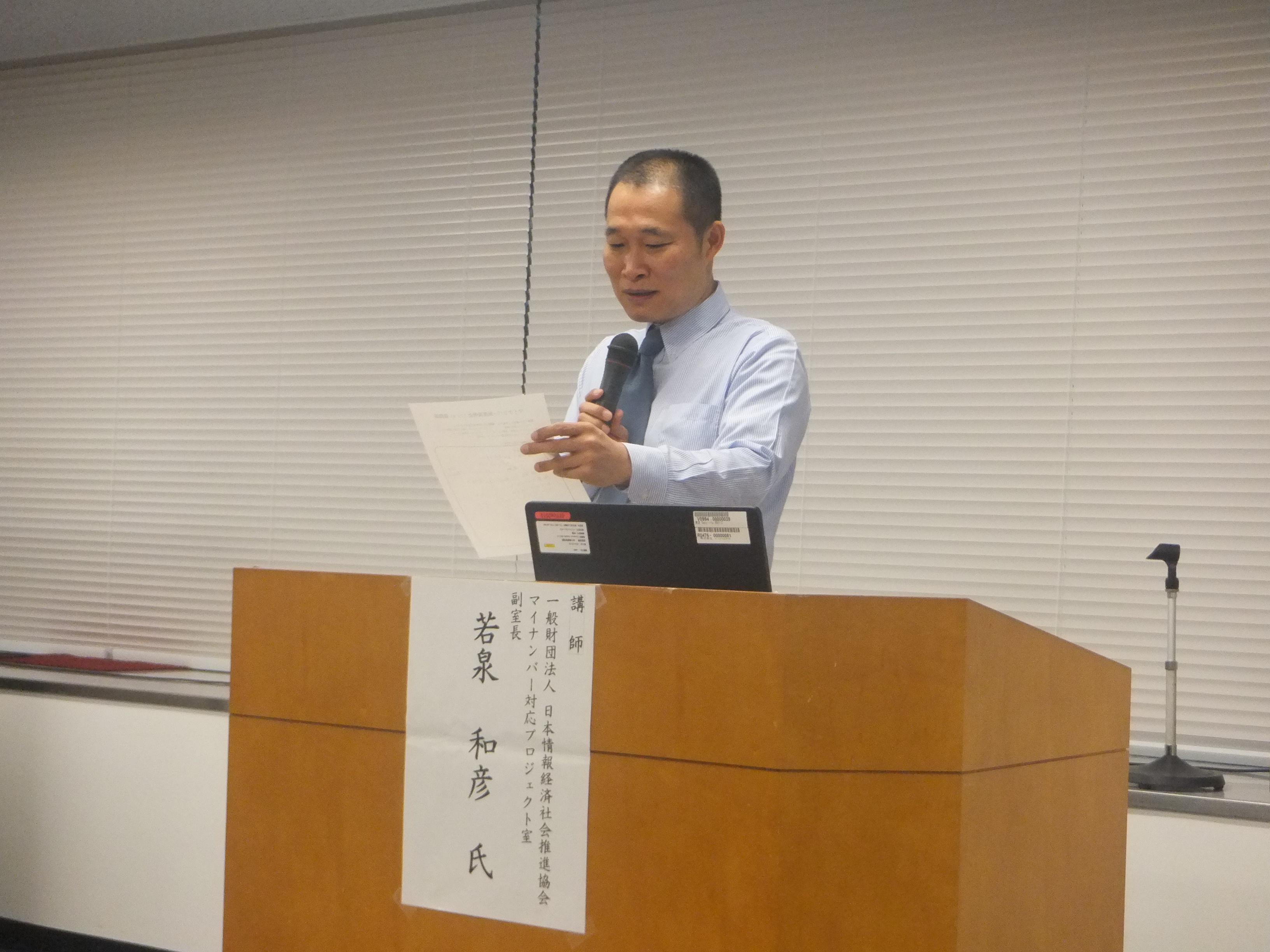 東京商工会議所地域振興部では7月9日、一般財団法人日本情報経済社会推進協会 マイナンバー対応プロジェクト室 副室長 若泉 和彦氏を講師に招き、『マイナンバー制度説明会』を開催し、160名を超える方が参加しました。