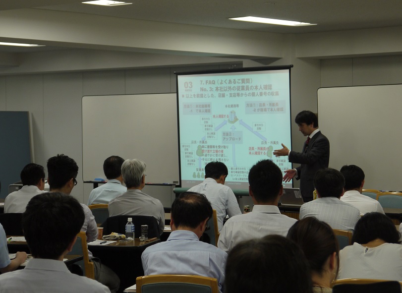 東京商工会議所研修センターは、7月16日(木)、「マイナンバー実務対策講座〔経営者および法務担当者向け〕」(講師:影島 広泰氏・牛島総合法律事務所 パートナー弁護士)を開催、午前・午後の2回で計95名が参加しました。