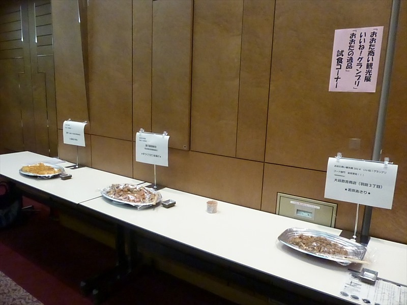 当日は90名が参加。松原大田区長からの挨拶のほか、希望者による自社PRが行われたり、参加者同士が積極的に名刺交換する様子が見られ、終始会場は賑わいを見せていました。会場内には、「おおたの逸品」や商い観光展「いいね!グランプリ」受賞企業の商品などの試食コーナーを設け、卵焼き、さつま揚げ、佃煮、甘納豆、プリン、あげパンをお楽しみいただきました。