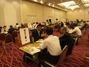当面接会には、来春に高校新卒者採用を予定している会員企業109社から170人の採用担当者が参加するとともに、城東地区や近隣地区の高校30校の就職担当職員が参加し、業務内容や雇用条件などについて情報交換しました。