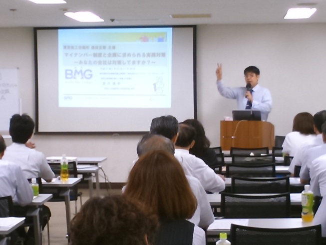 セミナーでは本年10月から通知が始まる「マイナンバー」の制度概要と、来年1月の運用開始に向けて必要な実務や注意すべき点について具体的な説明がなされました。受講者からは「話が具体的で分かりやすかった」、「会社目線での話だったので参考になった」との感想がありました。