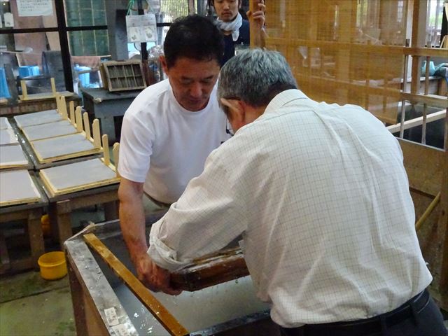 視察先の「埼玉伝統工芸会館」がある埼玉県比企郡小川町の「細川紙(ほそかわし)」は「和紙:日本の手漉和紙技術」としてユネスコ無形文化遺産に登録されています。当日は小川町長の松本恒夫様ご夫妻にお出迎えをいただき、町長から小川町や会館についてご説明いただきました。また、館内の見学・紙漉き体験を実施し、印刷に欠かすことができない 紙 について改めて理解を深める機会となりました。