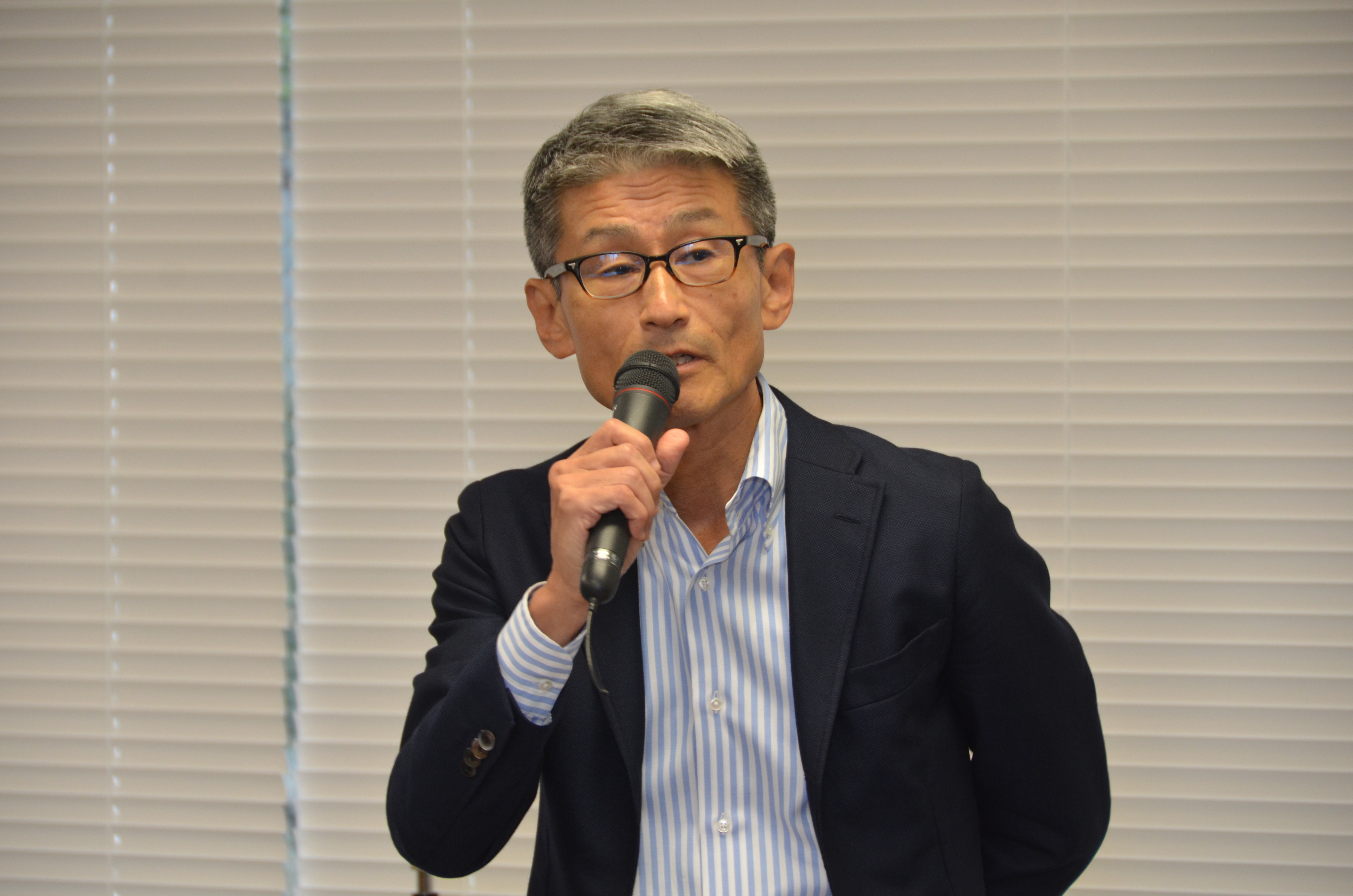 第1部では、共同通信PRワイヤー取締役の広沢敏正氏が登壇し、「広報の役割とプレスリリース」と題し講演。広沢氏は、プレスリリースについて「商品やサービスなどメディア(記者)に取材してもらいたい情報をわかりやすく文章化したもの」と説明した上で、記者の取材意欲をかき立てるためのポイントとして「ニュース性や独自性、読者・視聴者の共感などがタイトルと書き出しを読んで想起されるかが重要だ」と指摘し、多数の事例を紹介しました。また、ケーススタディでは、重要な要素から順番に書く「逆三角形」の文章構成など、リリースの書き方のポイントを確認しました。