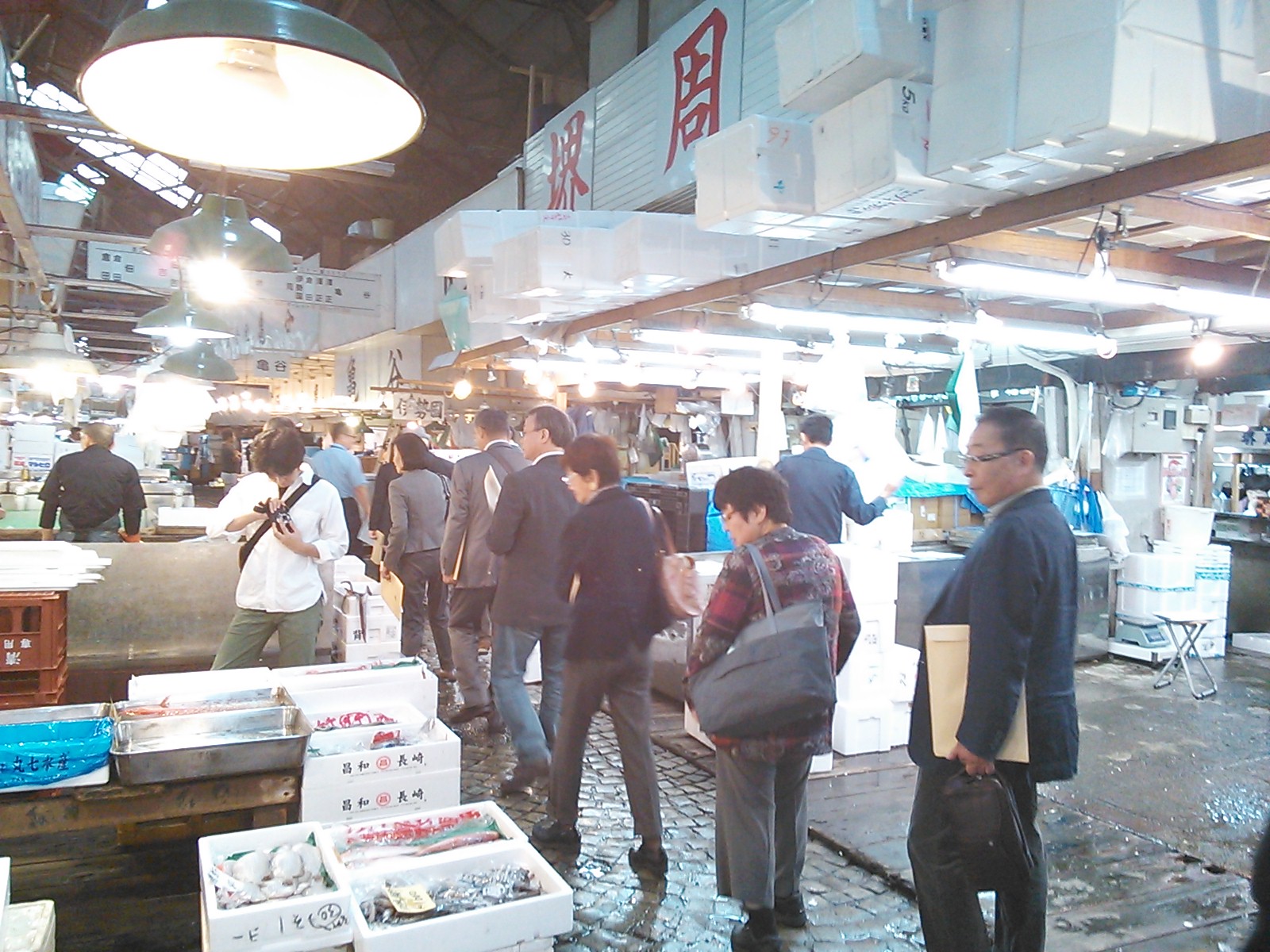 文京支部は10月14日、卸売分科会主催で築地市場視察会を実施しました。平成28年11月に豊洲への移転を控える築地場内市場を東京魚市場卸協同組合のご担当者の案内で見学。青果部・水産部の仲卸業者売り場、競り場など普段は見ることのできない「東京の台所」の一面を見ることができました。その後、豊洲への移転についてパネル展示や模型で紹介する東京いちばステーションを見学した後、各自自由に場外市場を視察、買い物などを楽しみました。