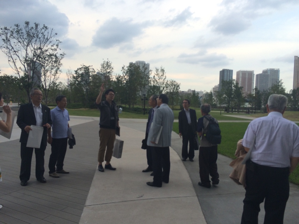品川シーズンテラスは、国際ビジネスの拠点として発展する品川エリアに、今年5月28日にグランドオープンした大型複合ビルです。同施設の開発を行ったNTT都市開発の担当者より、品川シーズンテラスの最高水準の環境性能と品川エリアの開発に関するレクチャーを受け、参加者は真剣に聞き入っておりました。また、施設の見学においては、自然光をビル内に導くスカイボイドという高性能設備や、ビルと一体となる広大な緑地の風景に、参加者は感慨深げでした。