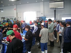 平成24年に本視察会で訪問した石巻。平成27年9月に新設オープンした石巻魚市場を訪問し、須能邦雄社長の案内で施設やセリの様子を間近で見学した。全長880mの巨大施設に備える、鮮魚をそのまま、または発泡容器に入れて全自動で検査できる放射能連続検査機を視察した。その後、石巻市街では、門脇小学校前や日和山から大震災まなび語り部ガイドの解説で平成24年からの復興状況の視察を行い、当時は中に入ることが出来なかった石ノ森漫画館にも入館した。