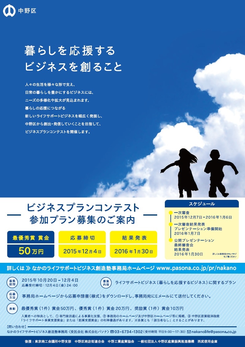 なかのライフサポートビジネス創造塾『ビジネスプランコンテスト』参加プラン募集のご案内