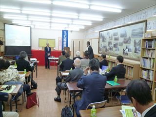 視察の後、姫路市商店街連合会会長の松岡淳朗氏、一般社団法人ひとネットワークひめじ理事の米谷啓和氏との懇談会を行い、姫路市と中野区の双方で、まちづくりに対する想いや、取組みの現状などについて活発に意見交換しました。とりわけ中野区側の参加者からは「まちづくりに市民の声をどのように反映させるか」といったプロセスや「まちを経営する」といった視点について、熱心な質問が出ました。