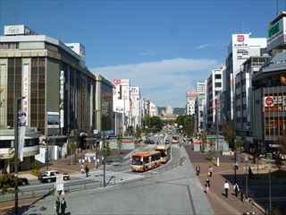 1日目は、平成27年10月30日に発表されたグッドデザイン賞で「地域づくりデザイン賞」(日本商工会議所会頭賞)を受賞した姫路駅前再整備地区を訪問し、まちのシンボルである姫路城を正面に望む「眺望デッキ」や、一般車両の進入を制限した「トランジットモール」、市民の憩いの場として利用されている「サンクンガーデン」等を視察しました。