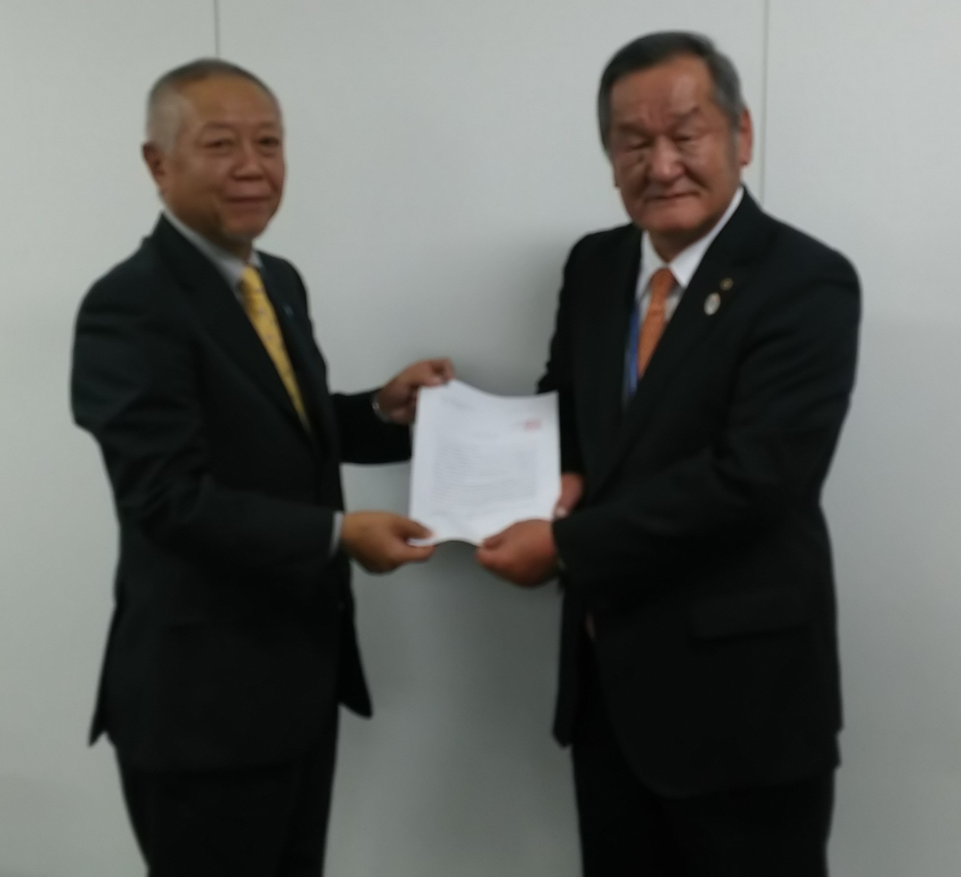 岡田 連合東京会長からご挨拶いただいたのち、連合東京がとりまとめた「政策・制度要求」についての要請書手交を行いました。