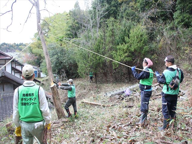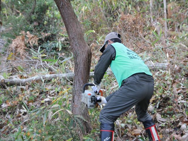 特に、幹が切りづらい、太い柿の木や竹の伐採には、非常に苦労したものの全員の力をあわせて作業を行いました。