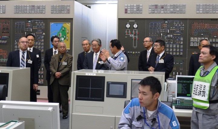 川内原発の視察では、九州電力幹部から厳しい新規制基準への適合性審査をクリアし、地元自治体の了承も得て、営業運転再開に至るまでの取り組み等について説明を受けるとともに、使用済み核燃料プールや新規制基準対応の緊急時対策所、非常用ディーゼル発電機燃料油貯蔵タンク、組み立て式水槽の訓練等を視察しました。