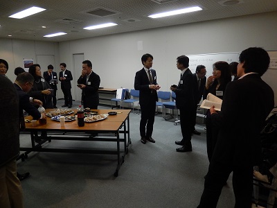 参加者は120秒間で自社PRを実施し、その後懇親交流会に移りました。懇親交流会では、自社パンフレットなどを渡したり、異業種間で事業のパートナーになれないかお互いに話し合う参加者の姿が見られました。