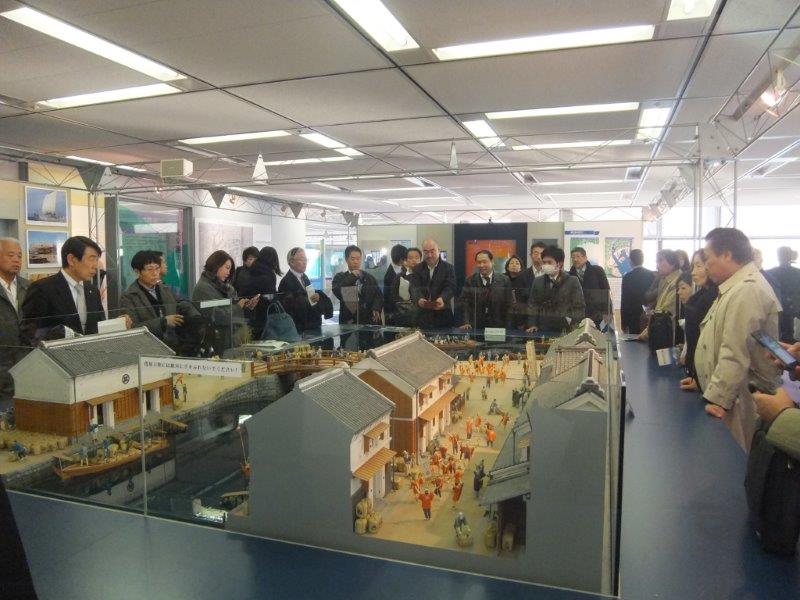 船上では、東京都港湾局 広報担当課長の西平氏、および港湾営業専門課長の山田氏から、クルーズ客船の誘致や東京港の将来計画、津波・高潮対策等についてご説明いただきました。また、「東京みなと館」では、東京港の歴史や臨海副都心の開発について、模型を用いた説明がありました。