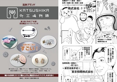 葛飾ブランド「葛飾町工場物語」(http://www.tokyo-cci.or.jp/katsushika/machikoba/)は、製品等(部品、製造にかかわる技術も含む)の製造背景やエピソードについて、マンガ等を通して、「ものづくりのまち葛飾」を広くPRする全国でもめずらしい地域ブランド発信事業です。