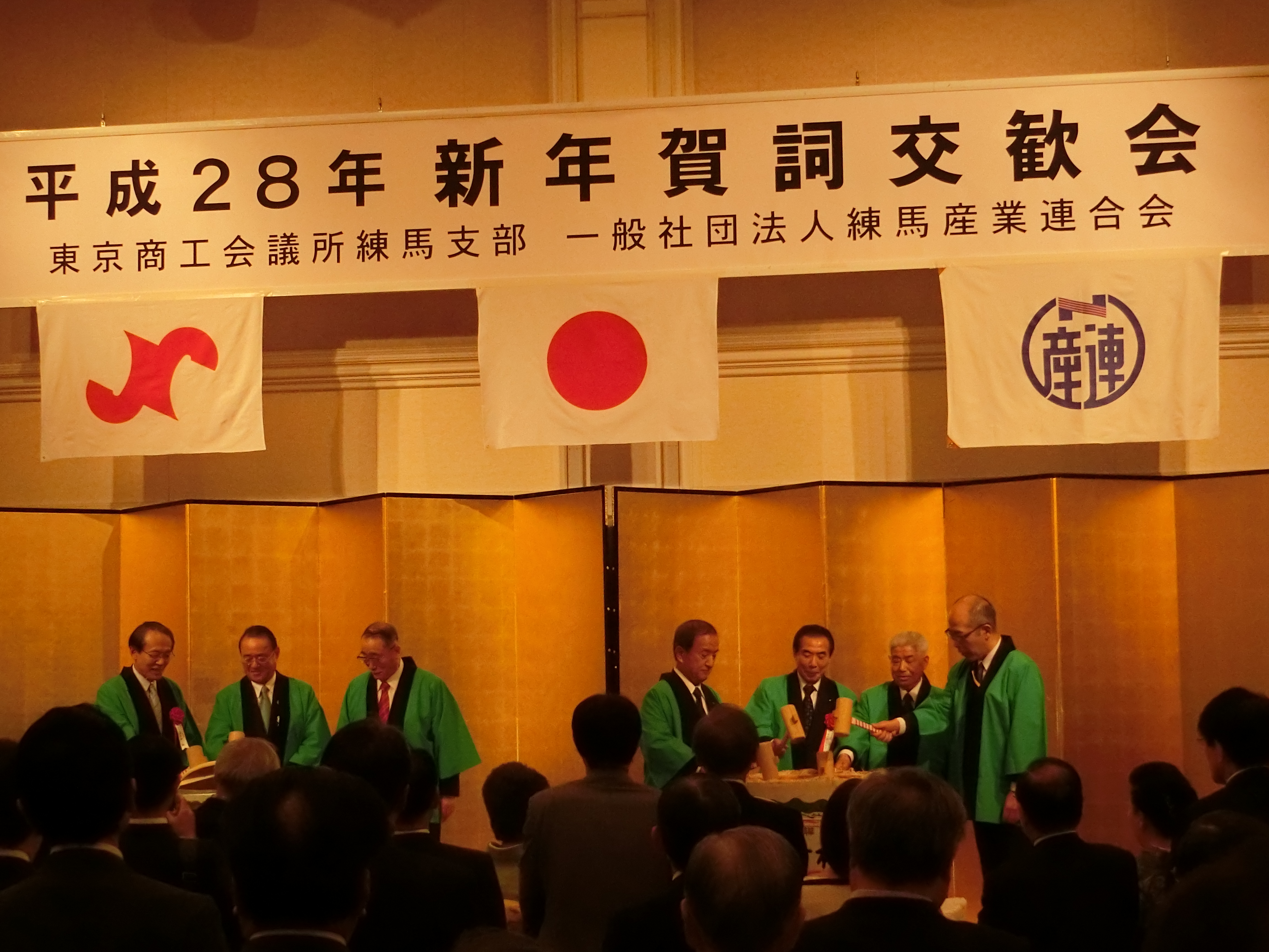東京商工会議所練馬支部は1月28日、練馬産業連合会と共催で「平成28年新年賀詞交歓会」を開催し、支部の一般会員、永年会員、新入会員、役員などが参加しました。当日は、新春お楽しみ抽選会などをまじえ、盛大に行なわれました。