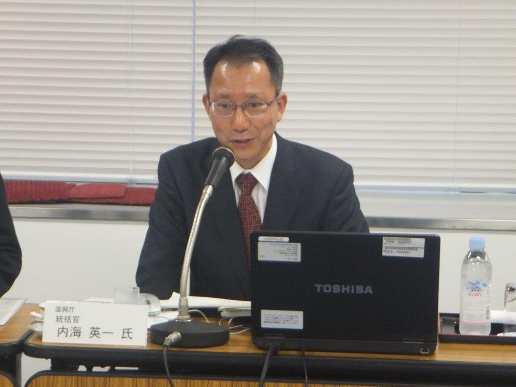 会議では、復興庁統括官の内海氏から「東日本大震災からの復旧・復興に向けた政府の取り組み」について、また東京都総務局総合防災部課長の小林氏から、本年3月に公表予定の「東京都震災復興マニュアル」について、それぞれご講話いただきました。