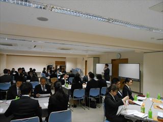 研修では、名刺交換やビジネス文書といったビジネスマナーの基本をグループワークを通じながら学びました。その他、メンタル対策等についても理解を深めました。受講者からは「基礎をしっかりと学ぶことができた」、「実践の場でいかしていきたい」など、大変好評を得ました。