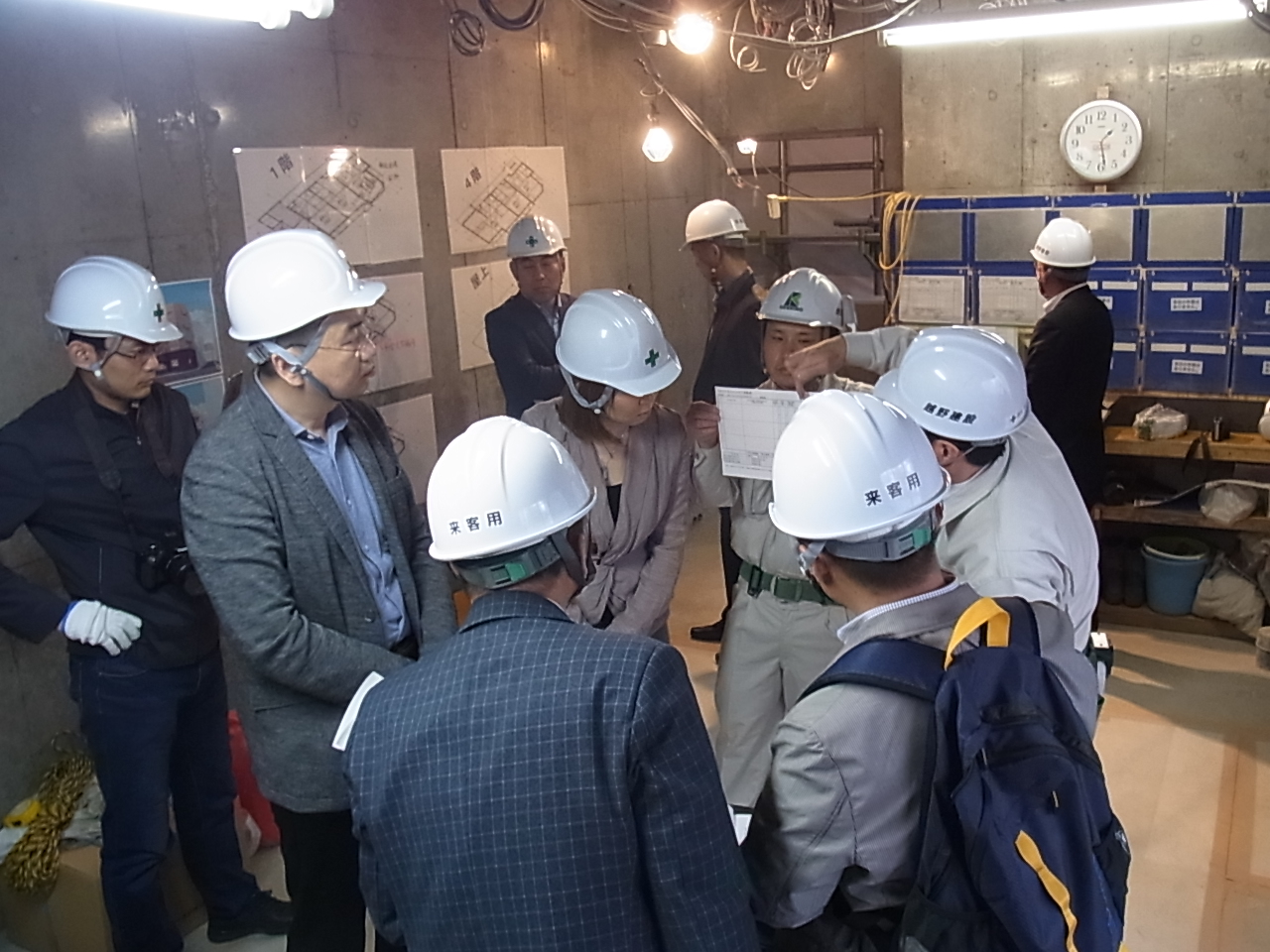 午前中に説明が行われた後、午後には施工現場を訪れ、現場レベルでの安全管理、品質管理の取組みが紹介されました。視察団は、安全衛生管理、材料の受入検査、リスクアセスメントなどの管理手法については、自国でも取り入れるべく、必死にメモを取りながら説明に耳を傾けられました。