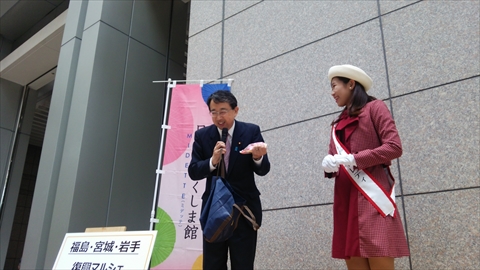 また、29日には、橘復興副大臣が来場されました。橘副大臣は「被災地の復興には、販路の回復、拡大が必要であり、このように企業の協力のもと継続して支援をする事は、非常に重要である。復興庁も引き続き支援していきたい。」と述べられました。