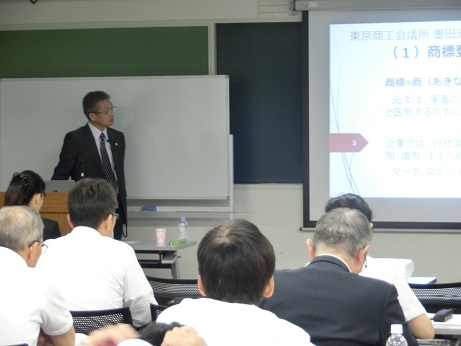 墨田支部では10月4日、セミナー「商標制度の利用と中小企業に役立つブランド戦略」(講師:弁理士・伊藤夏香氏/弁理士・藤岡茂氏)を開催し、40名が参加しました。