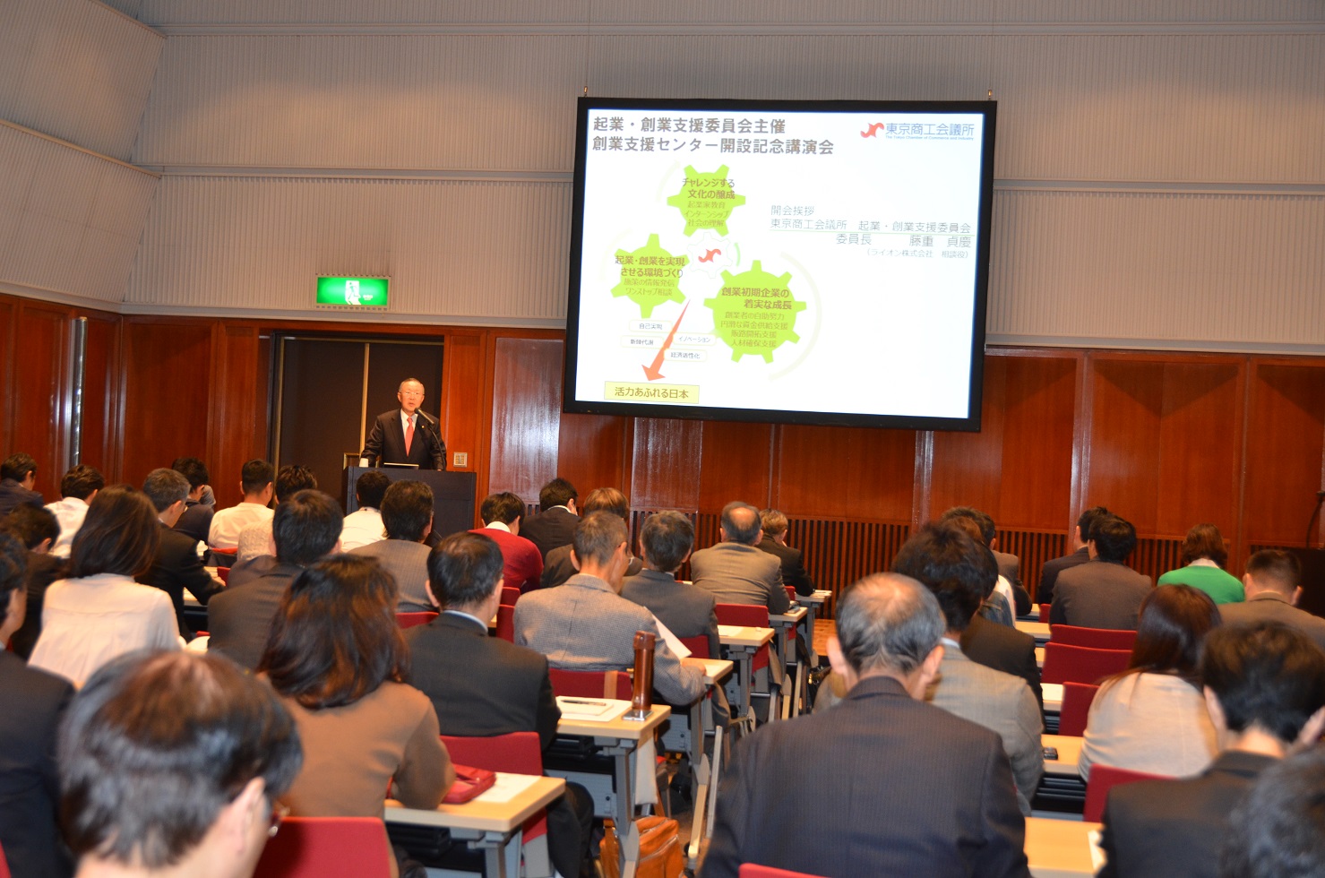 東京商工会議所起業・創業支援委員会は、10月28日創業支援センター開設記念講演会を開催し、110人が参加しました。